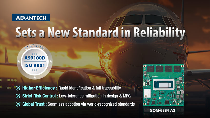 Advantech ha implementado las normas AS9100 en todas sus líneas de producción en Taiwán, que abarcan la transferencia de diseño, los parámetros de procesos de fabricación bloqueados, la trazabilidad de lotes y los controles de liberación. Como producto de demostración certificado, el COM Express Compact Tipo 6 SOM-6884 A2 se fabricó bajo la certificación AS9100, y ofrece calidad de grado aeroespacial con documentación y trazabilidad claras. Para dar respuesta a los diversos requisitos, otras líneas de productos seguirán bajo AS9100, incluidos el COM-HPC Mini SOM-M250 y el COM Express Compact Tipo 6 SOM-6886, junto con otros productos certificados, de forma que se cumplan las estrictas demandas de los mercados aeroespacial, de defensa y otros de alta fiabilidad.