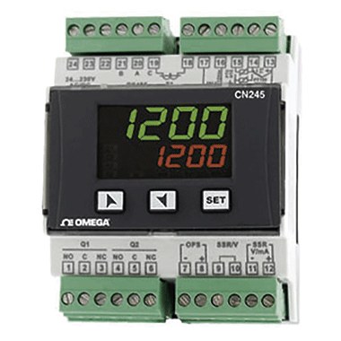 El regulador serie CN243 es un regulador de temperatura/proceso de 1/16 DIN con entradas de termopar J, K, R y S. Gracias a este producto, que cumple la normativa CE, es posible supervisar y controlar con precisión aplicaciones de temperatura o proceso haciendo uso de un control proporcional integral derivativo (PID) o de un control de conexión/desconexión. El led doble muestra una indicación local del valor de proceso y del valor de punto de referencia. El CN243 incorpora asimismo entradas de proceso, detector de temperatura resistivo (RTD), entradas de termistor, funciones de alarma, 3 segmentos de rampa y meseta, entrada digital y protección con contraseña. Ideal para utilizar en procesos de automatización industrial, refrigeración, calefacción en línea de semiconductores y procesamiento de plásticos.