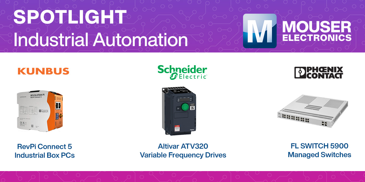 Mouser ofrece una nueva gama de productos ideales para la automatización industrial. Estos son algunos de ellos: