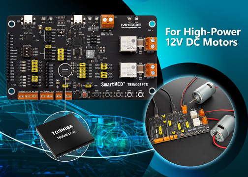 Toshiba Electronics Europe GmbH se ha asociado con MIKROE para integrar su SmartMCD™ para motores de CC con doble escobilla en la placa SmartMCD TB9M001FTG. Esta placa permite a los ingenieros de sistemas automotrices diseñar el controlador de control de motores inteligente TB9M001FTG para aplicaciones automotrices, como techos solares eléctricos, limpiaparabrisas, elevalunas eléctricos y asientos ajustables, para optimizar la fase de prototipado.