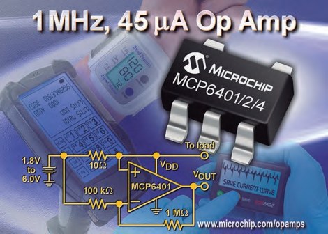 El rango de entrada en modo común de los amplificadores operacionales MCP6421/2/4, que llega hasta 0,3V por encima de ambos carriles de alimentación, se puede utilizar en aplicaciones de sensado de corriente en el lado de alto y bajo potencial (high-side y low-side, respectivamente). La baja corriente de reposo ayuda a prolongar la autonomía de la batería y la salida entre carriles permite detectar corrientes reducidas. La Figura 1 muestra un circuito sensor de corriente de la batería en el lado de alto potencial. La resistencia de 10 Ω se ha dimensionado para reducir las pérdidas de potencia. La corriente de la batería (IDD) que atraviesa la resistencia de 10 Ω provoca que su terminal superior sea más negativo que su terminal inferior. Esto mantiene la tensión de entrada en modo común del amplificador operacional por debajo de VDD, es decir, dentro del rango permitido. La salida del amplificador operacional también estará por debajo de VDD, dentro de su especificación de oscilación de tensión de salida máxima. A menudo se utiliza el sensado de corriente de bajo consumo, incluso para aplicaciones en el automóvil. Debido a las señales parásitas, un amplificador operacional que no haya sido mejorado para EMI puede proporcionar un valor incorrecto de la corriente de salida. La forma tradicional de reducir las señales parásitas de RF, o de evitar que entren en la etapa de entrada del amplificador operacional, consiste en emplear un filtro paso bajo cercano a la entrada. Para el amplificador operacional inversor de la Figura 2, el condensador C del filtro se sitúa entre dos resistencias de igual valor. Obsérvese que no se puede conectar directamente C a la entrada inversora del amplificador operacional porque podría provocar inestabilidad. Para reducir las pérdidas de señal, el ancho de banda del filtro debería ser como mínimo 20 o 30 veces superior al ancho de banda de la señal. Para el amplificador operacional no inversor de la Figura 3, el condensador C puede conectarse directamente a la entrada del amplificador operacional, tal como se muestra, y una resistencia de entrada con un valor R proporciona la frecuencia de corte que el amplificador operacional inversor. En ambos casos, se deben utilizar condensadores de tipo chip con una baja inductancia. El condensador debe estar libre de pérdidas resistivas o de problemas de coeficiente de tensión. Se puede emplear un núcleo de ferrita en lugar de la resistencia. Sin embargo, la impedancia del núcleo de ferrita no está bien controlada, es no lineal y generalmente no supera los 100 Ω entre 10 y 100 MHz. Esto exige un condensador de un valor elevado para atenuar las frecuencias más bajas. Los amplificadores de instrumentación de precisión son especialmente sensibles a los errores de offset de CC debido a la presencia de EMI y RFI en modo común. Esto es muy similar al problema experimentado por los amplificadores operacionales y, al igual que para éstos, la sensibilidad a EMI y RFI es más acusada con dispositivos amplificadores de entrada de baja potencia. Las salidas de amplificador también deben protegerse frente a EMI y RFI, sobre todo si existen grandes longitudes de cable, que actúan como antenas. La señales de RF recibidas en una línea de salida se reacoplan a la entrada de amplificador, donde se rectifican y aparecen de nuevo a la salida como una variación del offset. La respuesta más habitual del amplificador operacional frente a EMI es una variación de la tensión de offset CC que aparece a la salida del amplificador operacional. La conversión de una señal EMI de alta frecuencia en CC es el resultado de un comportamiento no lineal de los diodos internos, formados por las uniones p-n de silicio dentro del dispositivo, especialmente en el diodo ESD. Este comportamiento se denomina rectificación porque una señal CA se convierte en CC. La rectificación de la señal de RF genera una pequeña tensión CC en la circuitería del amplificador operacional. Cuanto se produce esta rectificación en la ruta de señal del amplificador operacional, el efecto se amplifica y aparece como un offset de CC a la salida del amplificador operacional. Este efecto es indeseable porque se añade al error de offset.