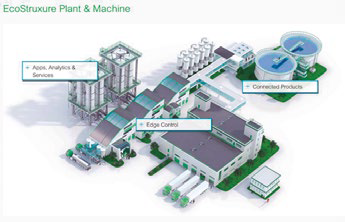 El uso de los protocolos de redes de bajo consumo hace posible que las unidades de detección de alimentación por baterías realicen mediciones y transmitan los datos que capturan. Pueden realizar estas tareas durante periodos de entre cinco a diez años sin necesidad de alimentación externa in situ. Cada sensor contiene su propia lógica de procesamiento para no transmitir más datos de los necesarios con el fin de mantener los servidores actualizados. Es posible programar en el sensor las condiciones límite y otros tipos de alarma, como la presencia o ausencia de una configuración clave. Se pueden usar varios tipos de sensores inalámbricos en la red, que incluyen interruptores de seguridad para monitorizar equipos potencialmente peligrosos, módulos de interfaz RFID, sensores ultrasónicos, sensores de presión y monitores de posición. Muchos sectores pueden aprovechar la combinación de los sensores XIOT y la nube Ecostruxture. En una aplicación, los sensores se instalaron en los ductos y en la tubería de desagüe para monitorizar si las válvulas que se emplean para ayudar a transportar agua lluvia en la red están funcionando de la forma esperada. No se disponía de ninguna conexión eléctrica, aunque en algunos lugares se podía usar paneles fotovoltaicos para alimentar las unidades de detección. Además de ofrecer el análisis a los usuarios, el sistema instalado basado en mil sensores logró ahorrar más de 100 000 € al año al evitar las inundaciones y reducir las verificaciones manuales de las válvulas.