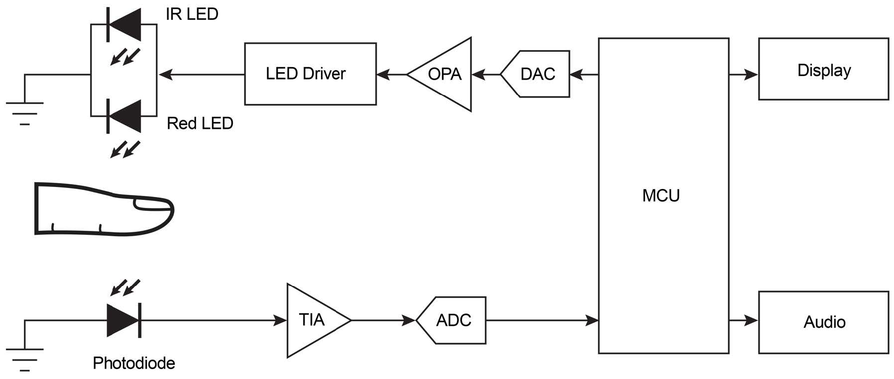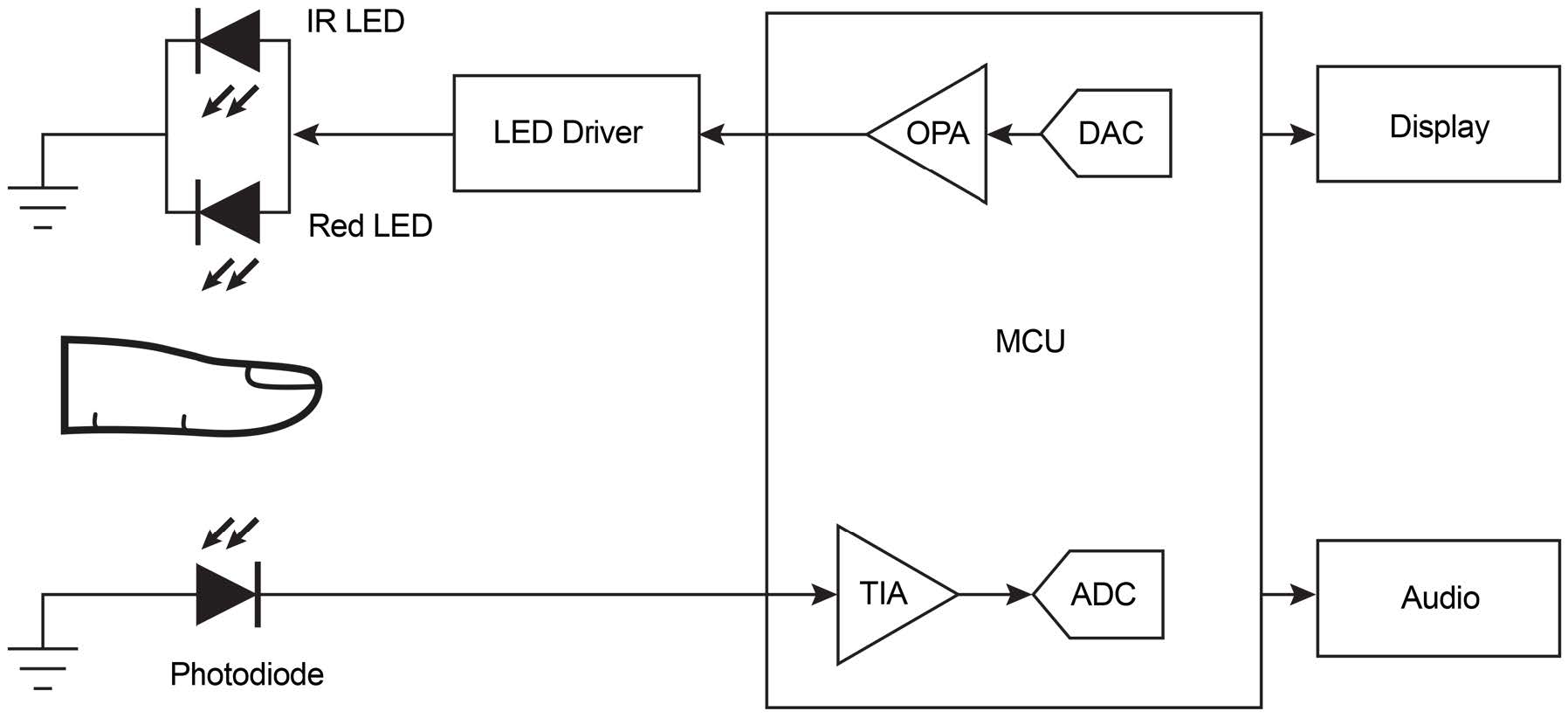 Figura 4. Diseño de oxímetro de pulso con componentes integrados