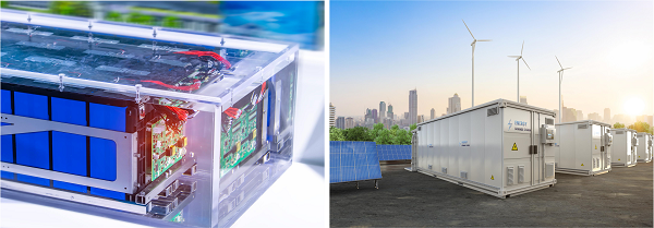 Figura 2: La gama de soluciones de almacenamiento de energía abarca desde los pequeños sistemas de baterías (de 3 a 20 kWh, izquierda) para hogares hasta los grandes (de 100 kWh a 5 MWh, derecha) para los operadores de red. (Fuente: Adobe Stock, a la derecha: phonlamaiphoto, izquierda: xiaoliangge)