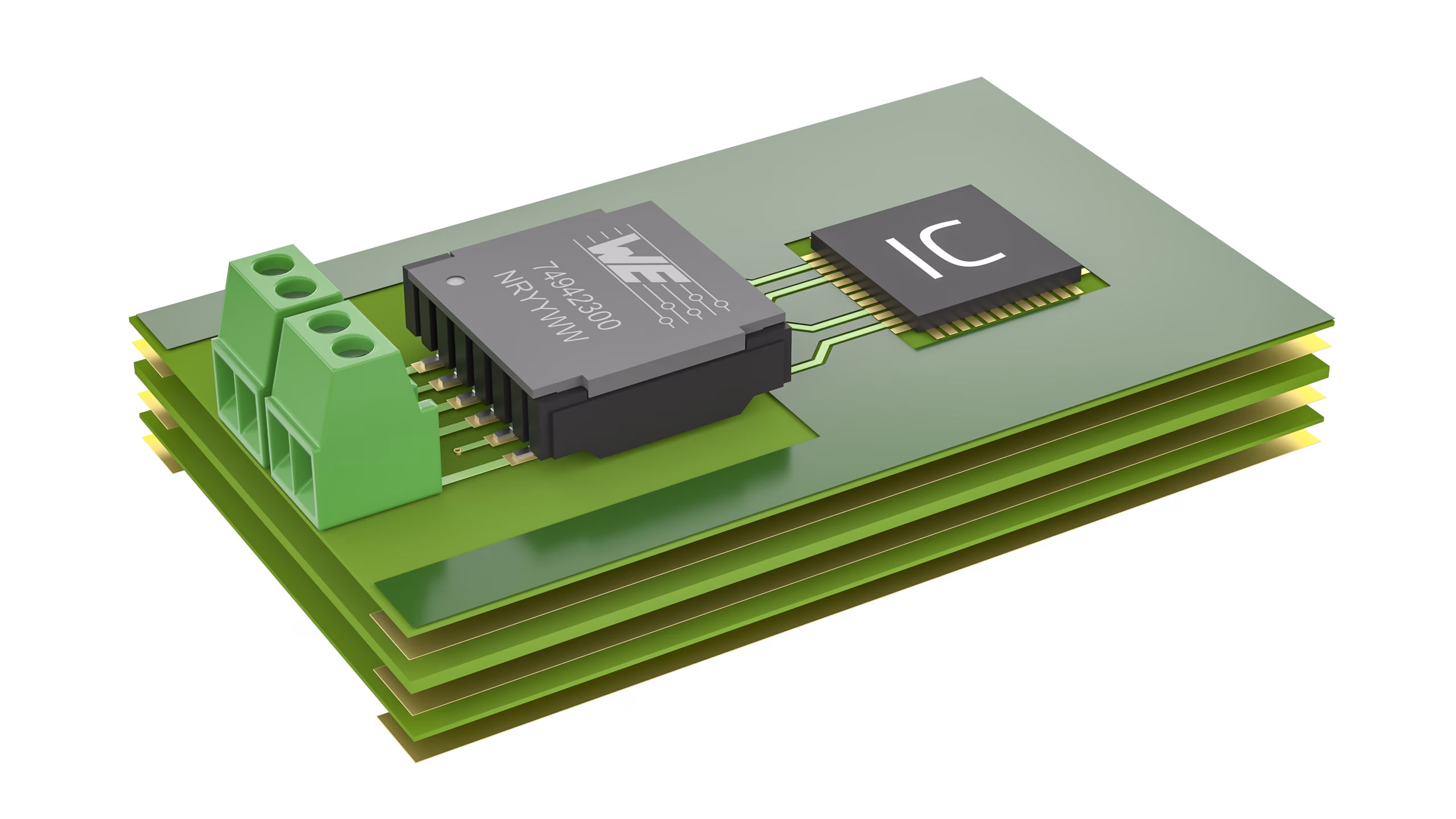 Figura 4: Los transformadores WE-BMS de Würth Elektronik proporcionan un aislamiento galvánico del BMS y los filtros en modo común suprimen las interferencias EMI.